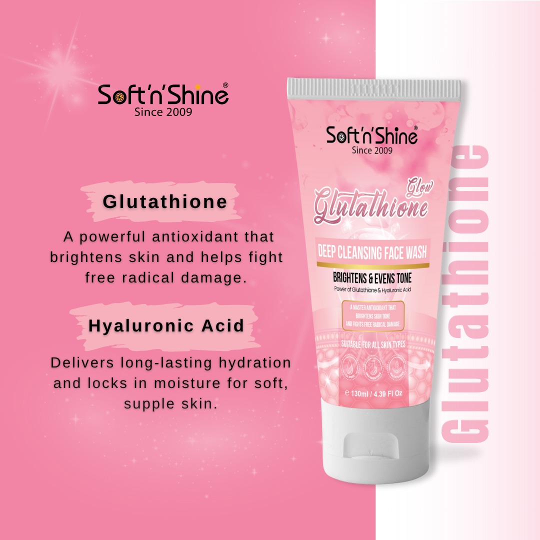 Uncover your natural glow with Soft n Shine Glutathione Glow Face Wash – your daily skincare essential for a radiant, refreshed complexion.