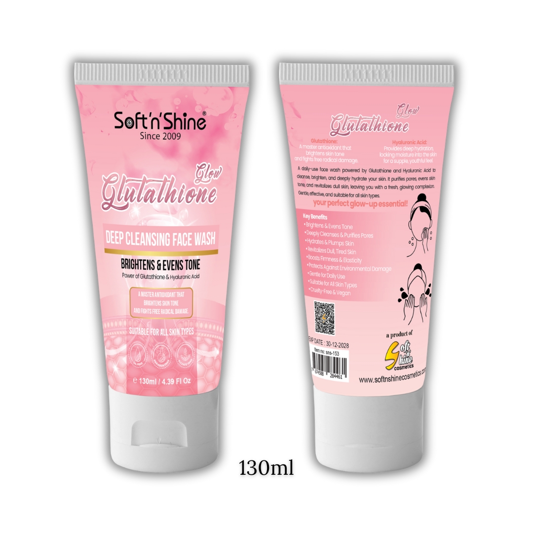 Uncover your natural glow with Soft n Shine Glutathione Glow Face Wash – your daily skincare essential for a radiant, refreshed complexion.