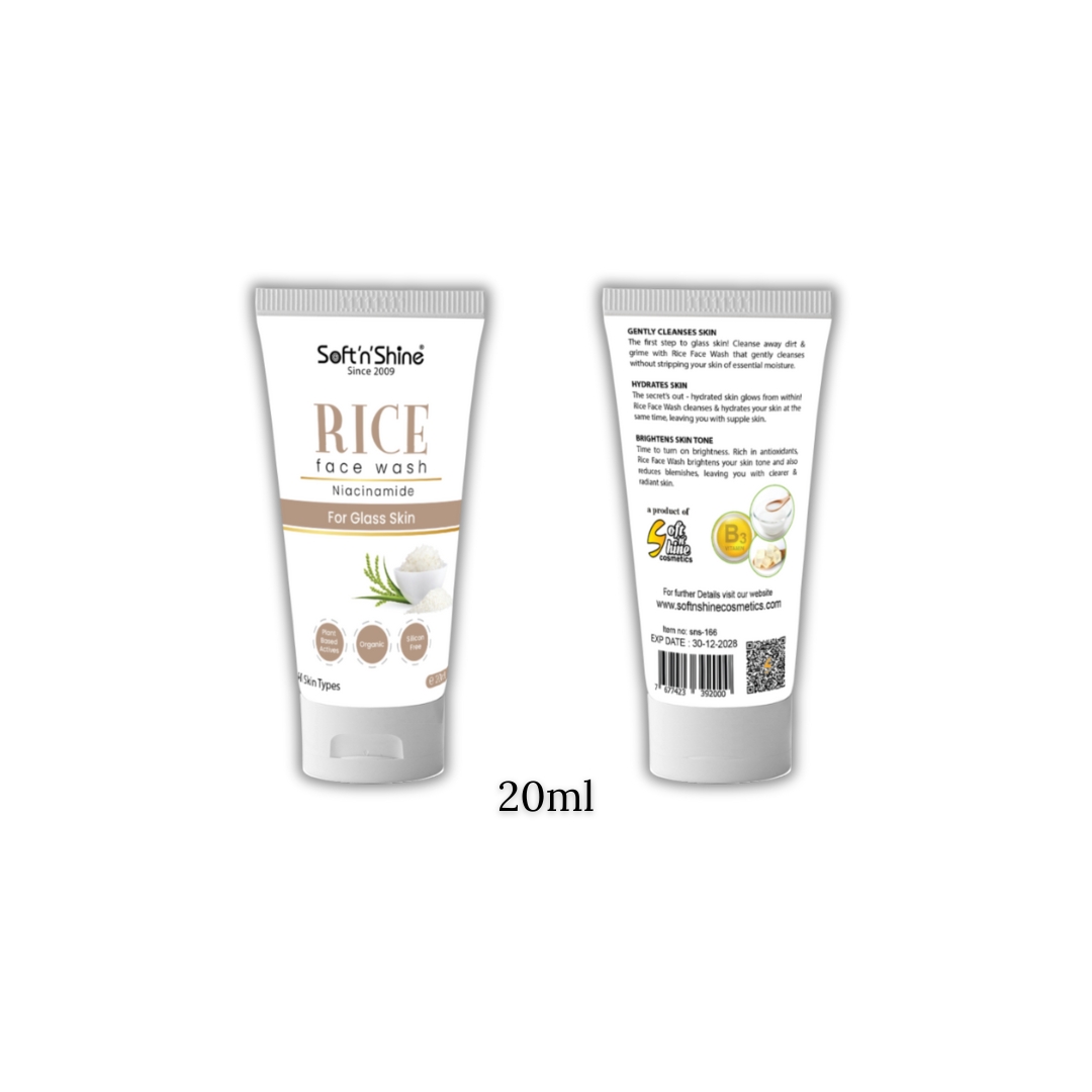 Achieve the radiant clarity of glass skin with Soft n Shine Rice Face Wash.