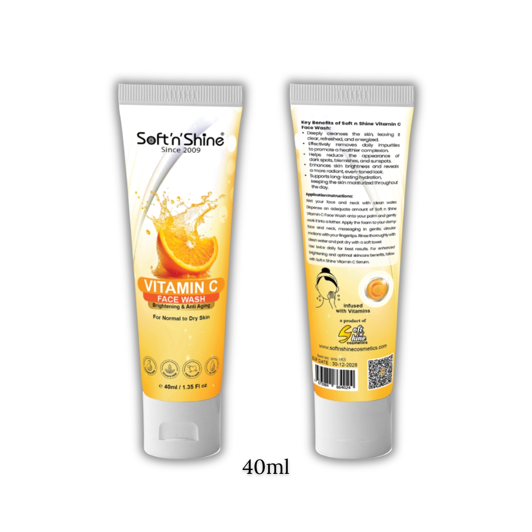 Soft n Shine’s Vitamin C Face Wash is a daily cleanser designed to refresh dull skin, boost brightness, and visibly reduce dark spots, blemishes, and early signs of aging.